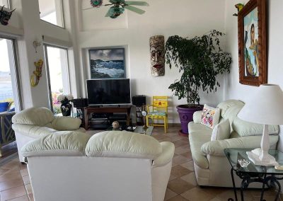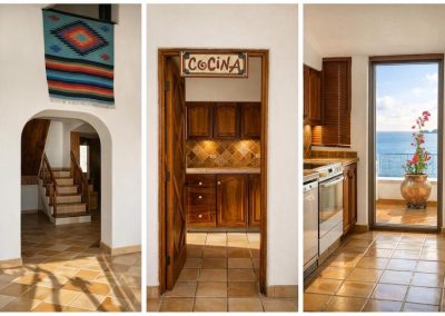 This condo, in the prestigious gated condominium community of El Faro (The Lighthouse) has a spacious living room with 2 story ceilings that opens onto a 56 ft veranda with a million dollar view of the bay. Imagine watching whales migrating to their Northern Pacific home while relaxing in your own private outdoor space. The kitchen contains rich wood cabinets and pullout drawers and ample space for preparing your gourmet meals. The entire penthouse is blessed with lots of bright, natural light and loads of storage space.
