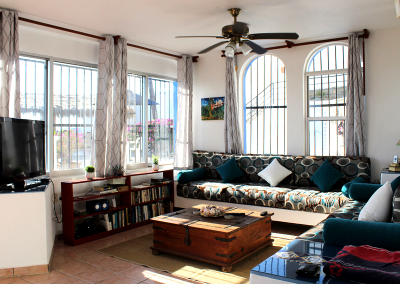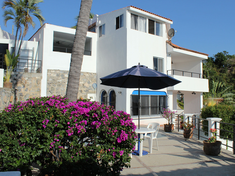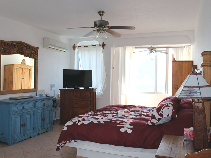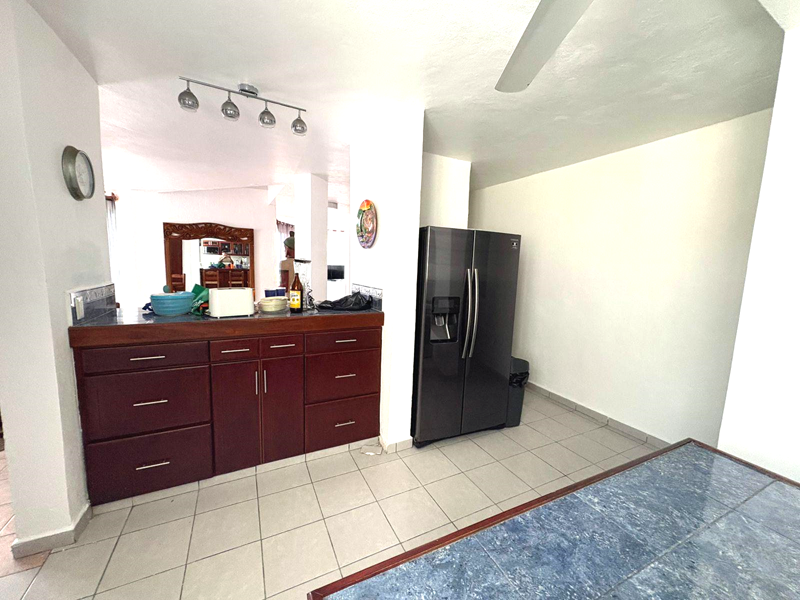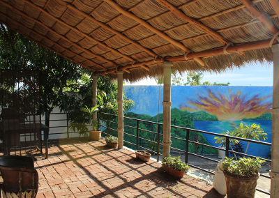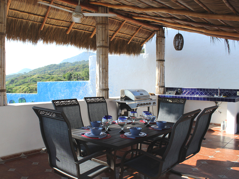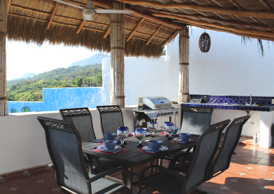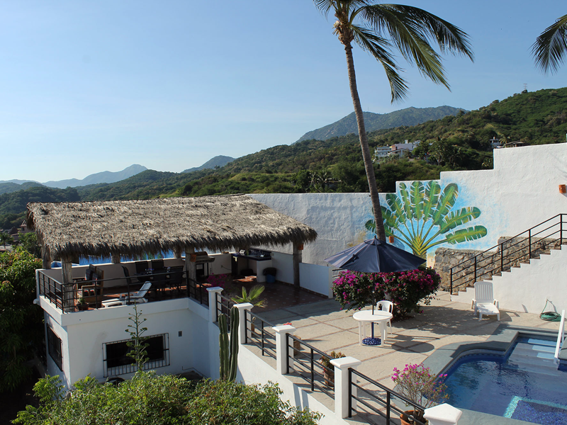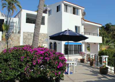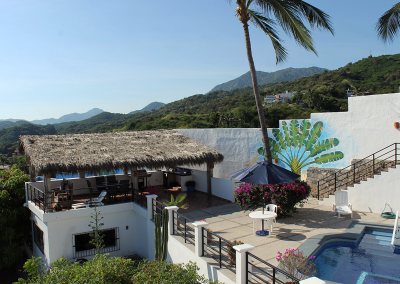 The name “Casa Vista Santiago” does not begin to describe the panoramic 180 degree view of Santiago Bay from every room in the Casa! Three bedrooms with Ensuite bathrooms with a bathroom on the main floor. The top floor bedroom with a large palapa covered patio with bar provides a spacious area to relax, sit back and take in the spectacular view. Modern Renovated Extended Kitchen with center island, fridge/freezer with ice maker, dishwasher, gas stove, closed in cupboards, dish service for 12 provides everything you need to make those favourite Mexican dishes.  A nice pantry with washer and dryer completes the kitchen area.  Large dining and living rooms with glass patio doors provides plenty of light and access to your incredible outdoor area.  If the weather gets too hot for you there are 5 in room air conditioners, WiFi is available.