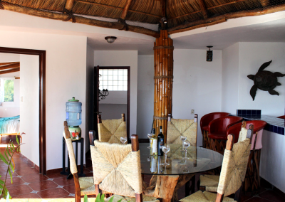 El nombre “Casa Vista Santiago” no alcanza a describir la vista panorámica de 180 grados de la Bahía de Santiago que se disfruta desde cada habitación de esta casa. Cuenta con tres recámaras, cada una con baño privado, además de un baño adicional en la planta principal. La recámara del último piso dispone de un amplio patio cubierto con palapa y bar, que ofrece un espacio ideal para relajarse, descansar y disfrutar de la espectacular vista. La cocina moderna, renovada y ampliada, cuenta con isla central, refrigerador/congelador con máquina de hielo, lavavajillas, estufa de gas, gabinetes cerrados y vajilla para 12 personas, brindando todo lo necesario para preparar sus platillos mexicanos favoritos. Una práctica despensa con lavadora y secadora completa el área de la cocina. Los amplios espacios de comedor y sala, con puertas corredizas de vidrio hacia el patio, proporcionan abundante luz natural y acceso directo a la increíble área exterior. Si el clima se torna demasiado cálido, la propiedad cuenta con 5 unidades de aire acondicionado. También dispone de WiFi.